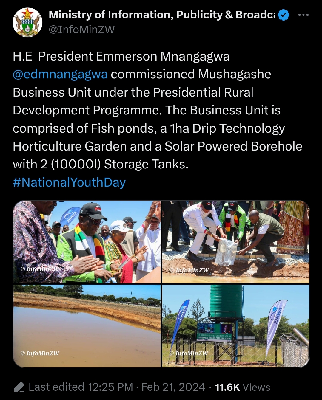 President Emmerson Mnangagwa has commissioned Mushagashe Business Unit under the Presidential Rural Development Programme.