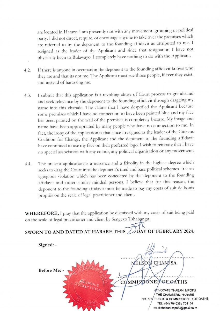 6. Sengezo ultimately seeking the arrest of Chamisa.