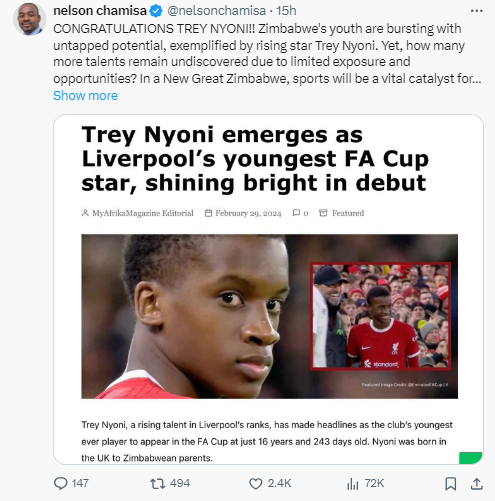 8. ChamisaTweets on Trey Nyoni Zimbabwean player in Liverpool colors