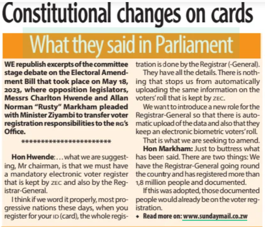 2. Ziyambi Ziyambi says the amendment was proposed by Hwende and Markham.