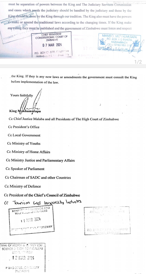 2. The new King Munhumutapa has been appointed by Mnangagwa as part of the rituals being performedin preparation of the new constitutional order.