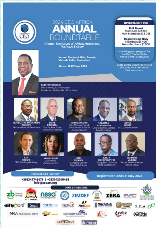 7. Mnangagwa to attend the annual CEO roundtable in Vic falls on 12 -15 June.