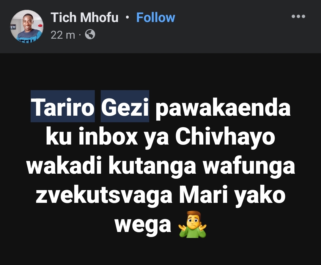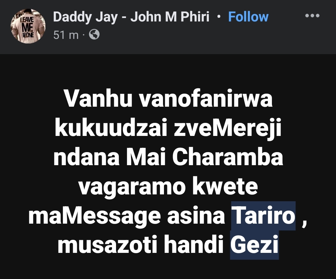 He added that Tariro is dating his married cousin who has loads of cash she to make a living.