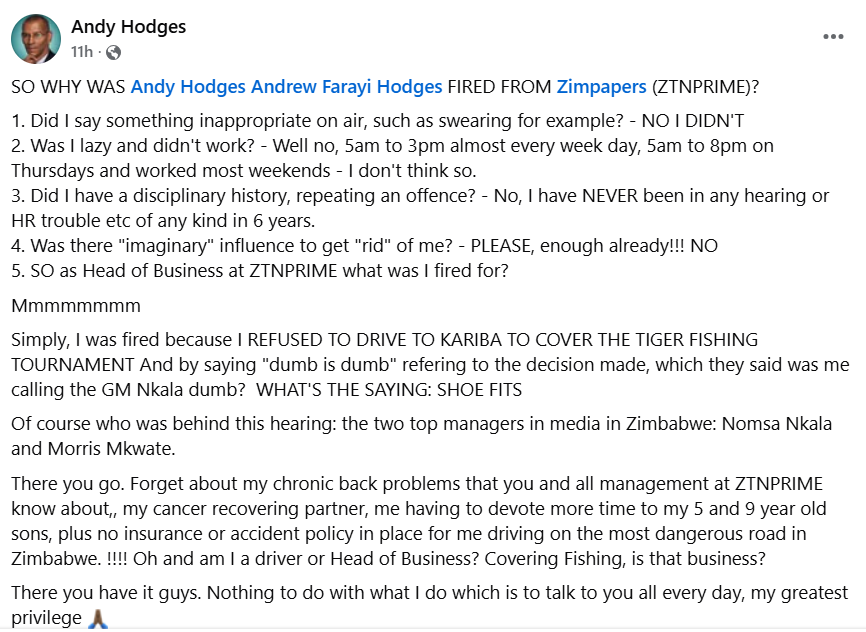 SO WHY WAS Andy Hodges Andrew Farayi Hodges FIRED FROM Zimpapers (ZTNPRIME)?