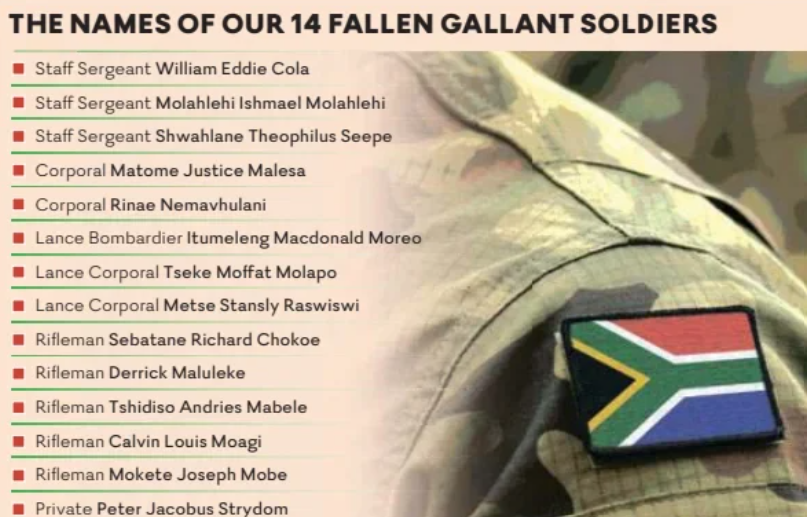 2. The bodies of 14 killed South African soldiers can not be brought back home.