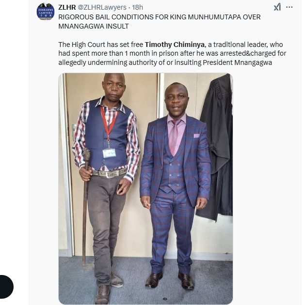 2. King Munhumutapa, Timothy Chiminya has been granted $200 bail