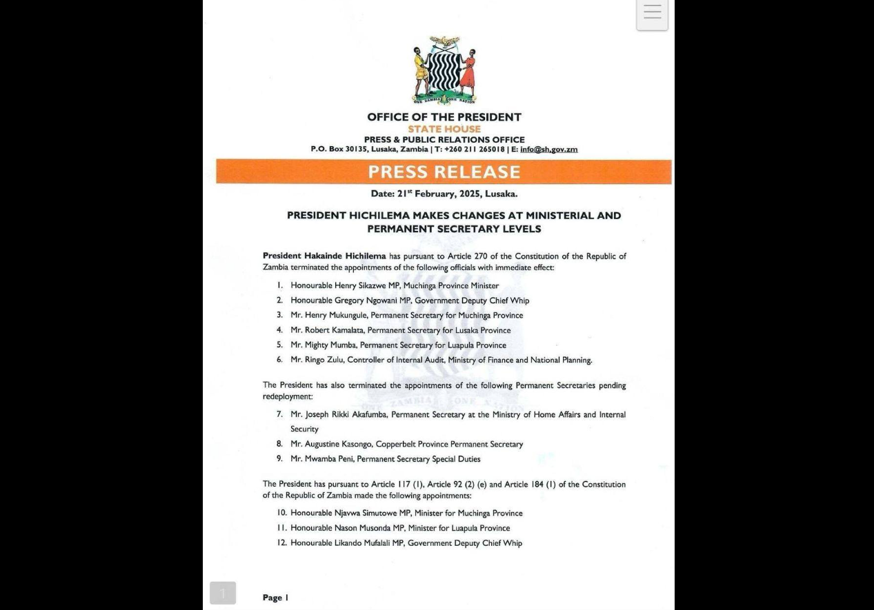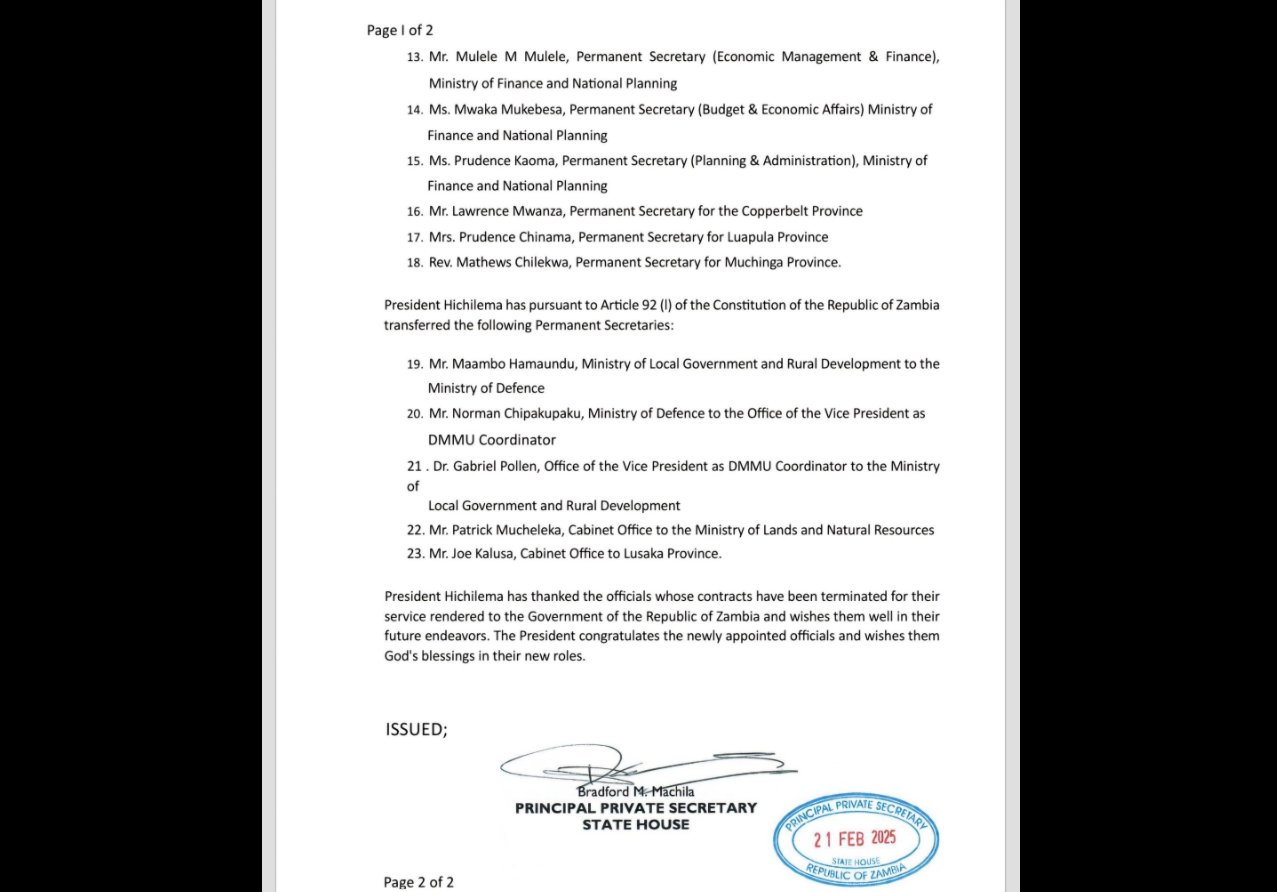 2. Hakainde Hichilema in massive cabinet reshuffle