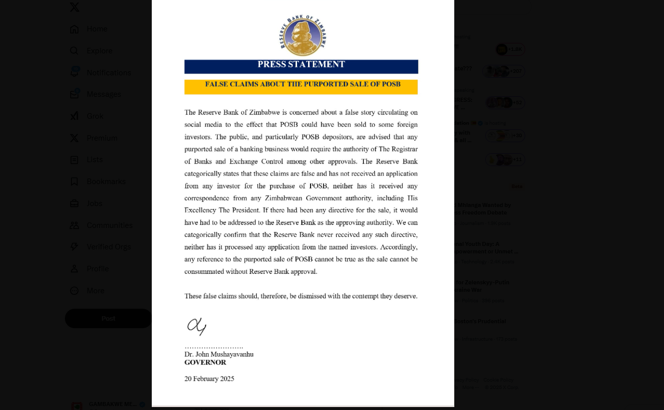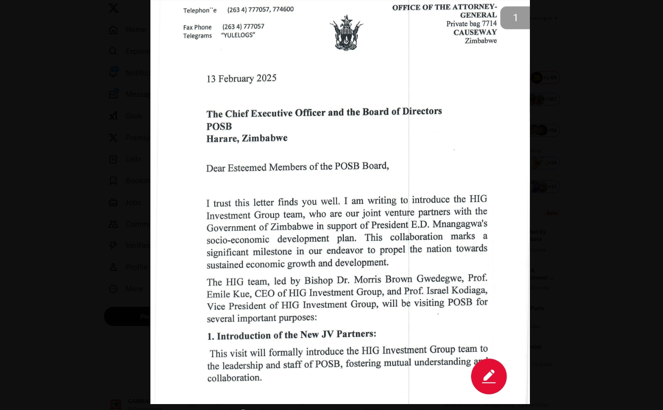 1. POSB has been sold to a consortium handpicked by Mnangagwa. The board of POSB Is chaired by Kenias Mafukidze, His deputy is Vongai Chiwaridzo. Other board members include Newton Demba, Michelle Hakata, Dennis Magaya, Anymore Taruvinga and Munyaradzi Chiura. Hebrew Investment Group (HIG) fronted by pro-Zanu PF cleric Morris Brown Gwedegwe.