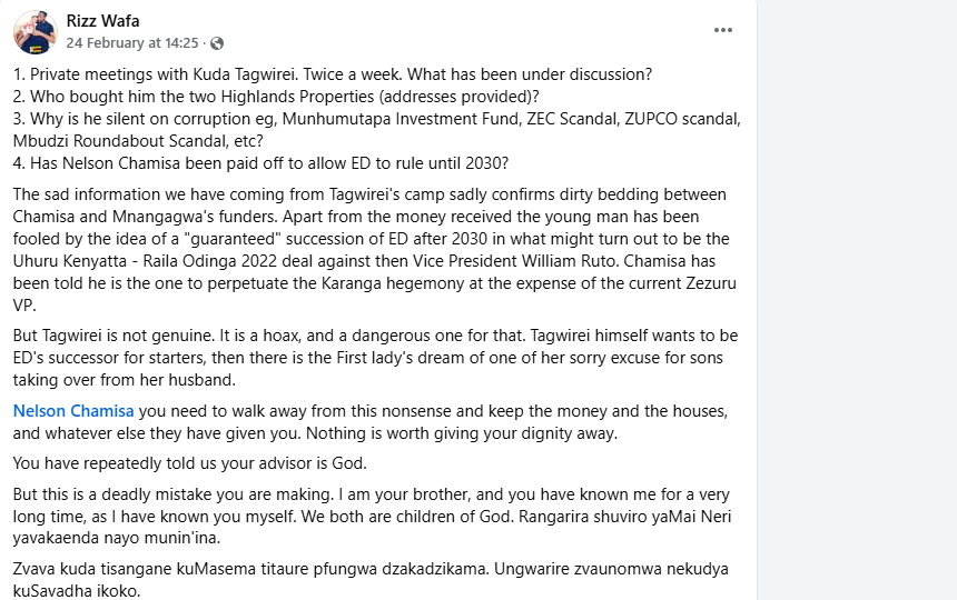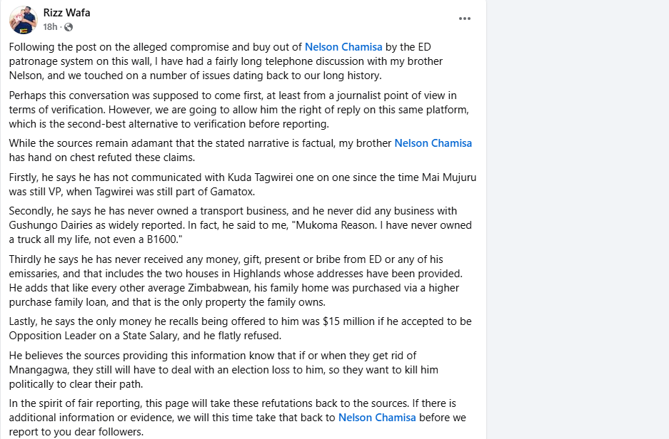 A secret recording by Zimbabwe activist, Chimhamha, has revealed the intricate behind the sece dealing between Zimbabwe opposition leader, Nelson Chamisa and the military.