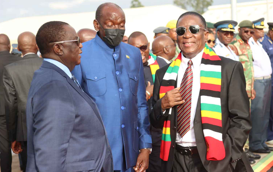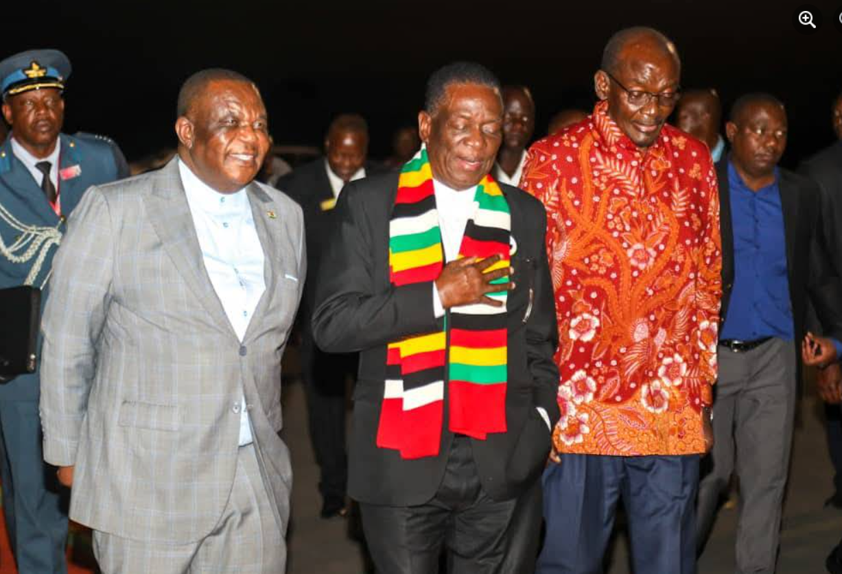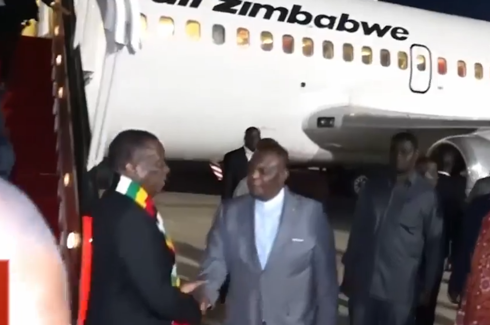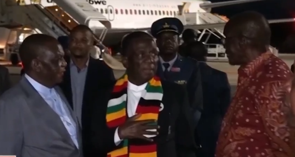 Mnangagwa arrived from Namibia and was not allowed to speak. Traditionally, Mnangagwa gives a speech on arrival.