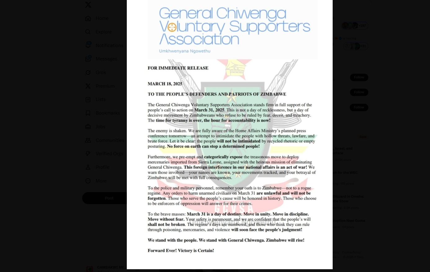 The Zimbabwe military has increased security around Chiwenga and confirmed that groups of mercenaries have been hired to eliminate the popular Vice President.