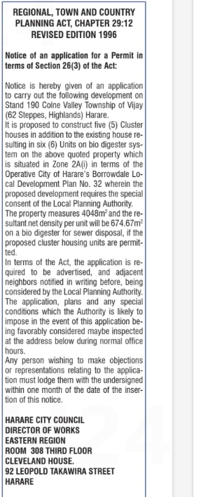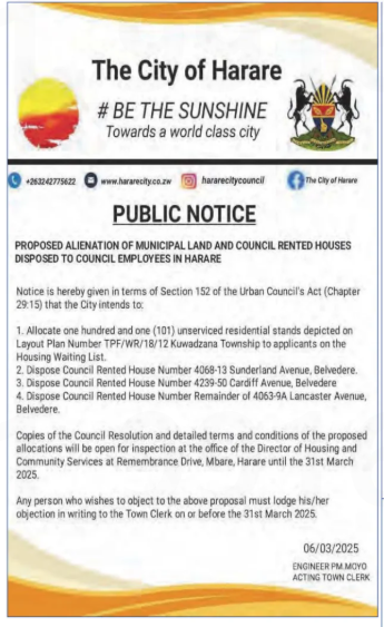 1. Harare City COuncil sells 101 residential stands in Kuwadzana