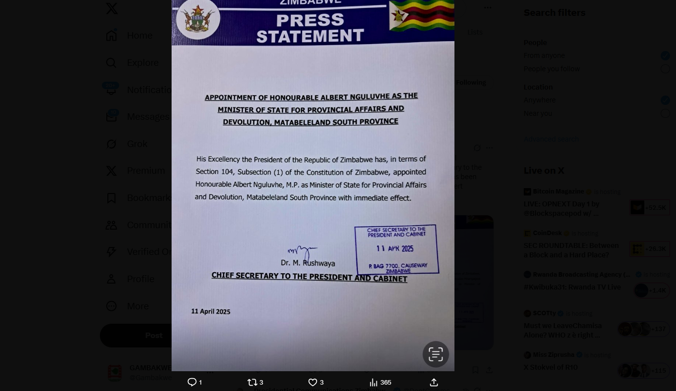 Zimbabwe top war veteran Blessed Geza will be addressing Zimbabweans shortly. Spokesman, Cde Nyokayemabhunu has made the announcement this morning.