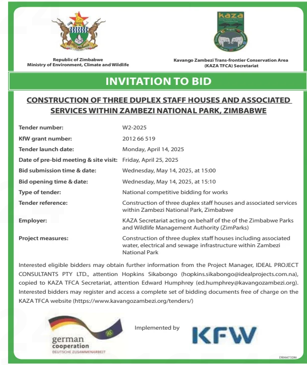Tender for the construction of three duplexes in the Zambezi National Park