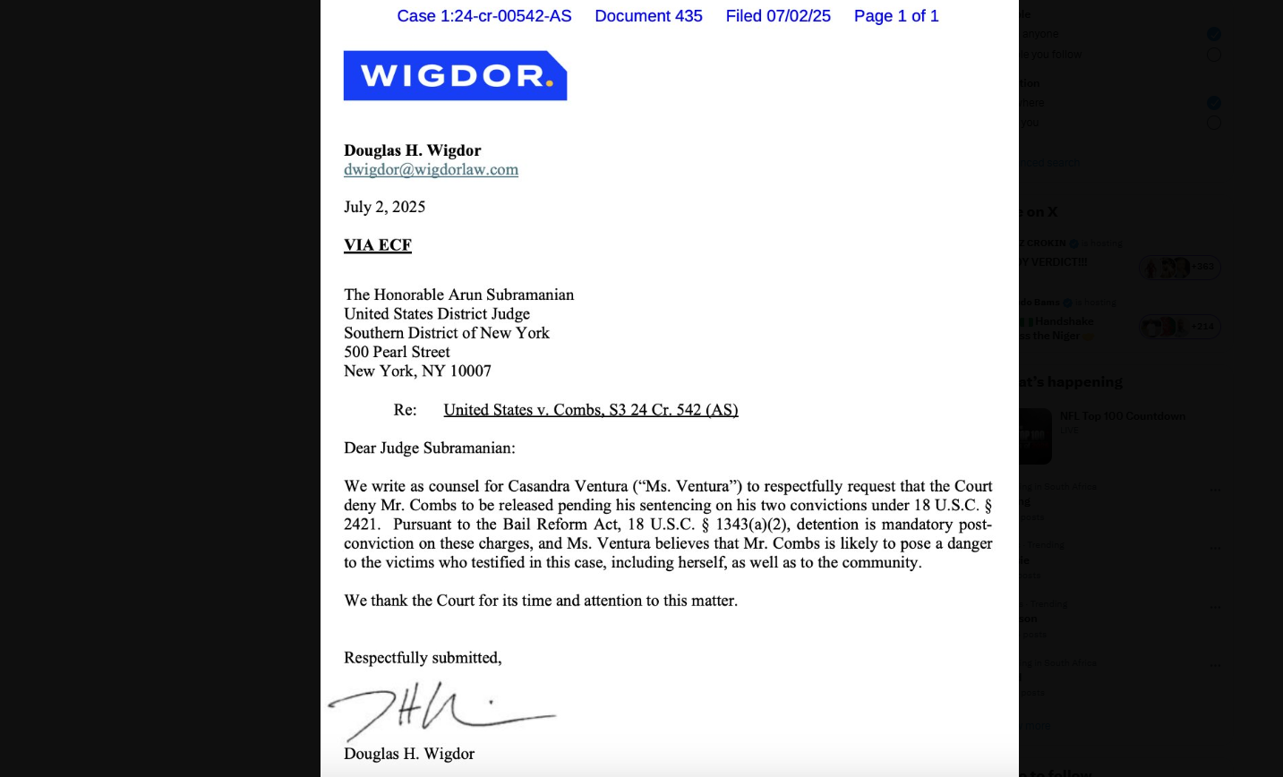 3. P-Diddy denied bail. Courts are closed till Monday and decision on bail will be made then. Cassie is opposing Sean “Diddy” Combs’ release from federal custody until he is sentenced.