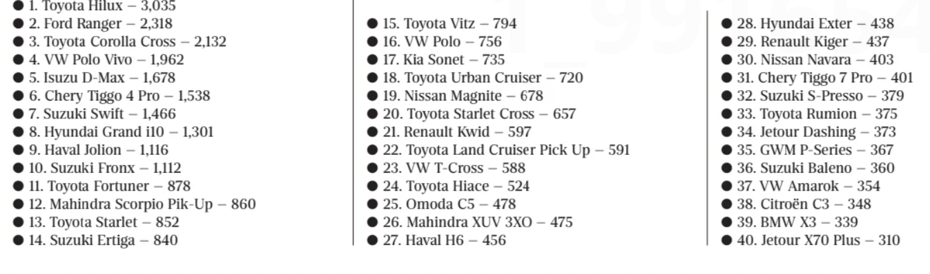3. Top selling South African Cars 2025