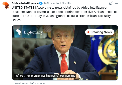 4. Trump Africa summit to be held feom 9-11 July in Washington DC, involving Presidents of Gabon, Guinea-Bissau, Liberia, Mauritania, and Senegal.