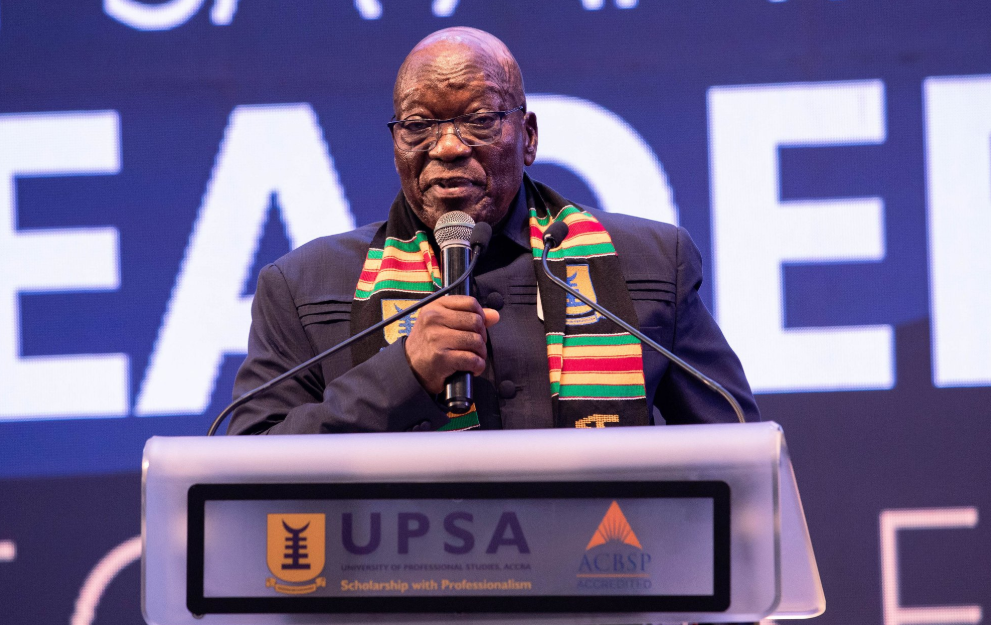 4. Jacob Zuma was given at the University of Professional Studies, Accra (UPSA), in Ghana. The specific event was the UPSA Annual Leadership Lecture 2025, which took place at the Kofi Ohene Konadu Auditorium on the UPSA campus.