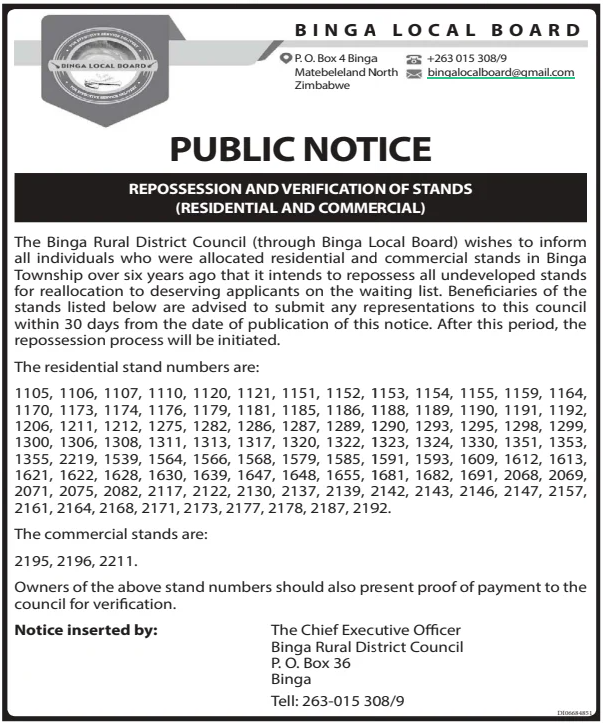 3. Binga to repossess stands