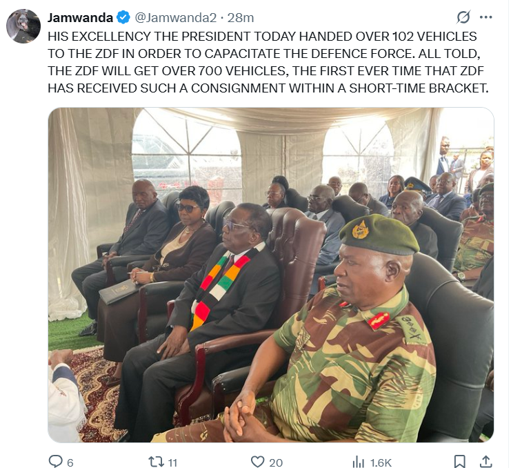 – Top Army Generals were not present at the handover of cars by Mnangagwa. Air Marshall Nzvede was absent at the function.