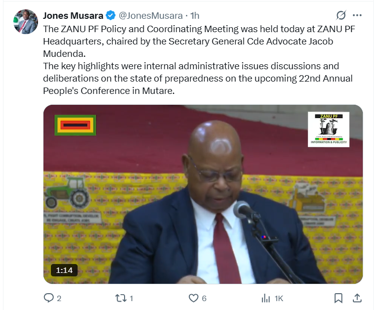 2. Jacob Mudenda chaired his first meeting as ZANU-PF Secretary General.