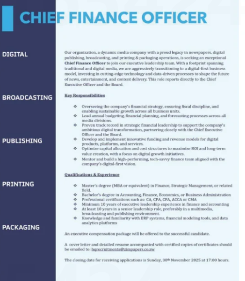 October 1, 2016: Appointed Bulawayo Town Clerk, moving from the Municipality of Victoria Falls.